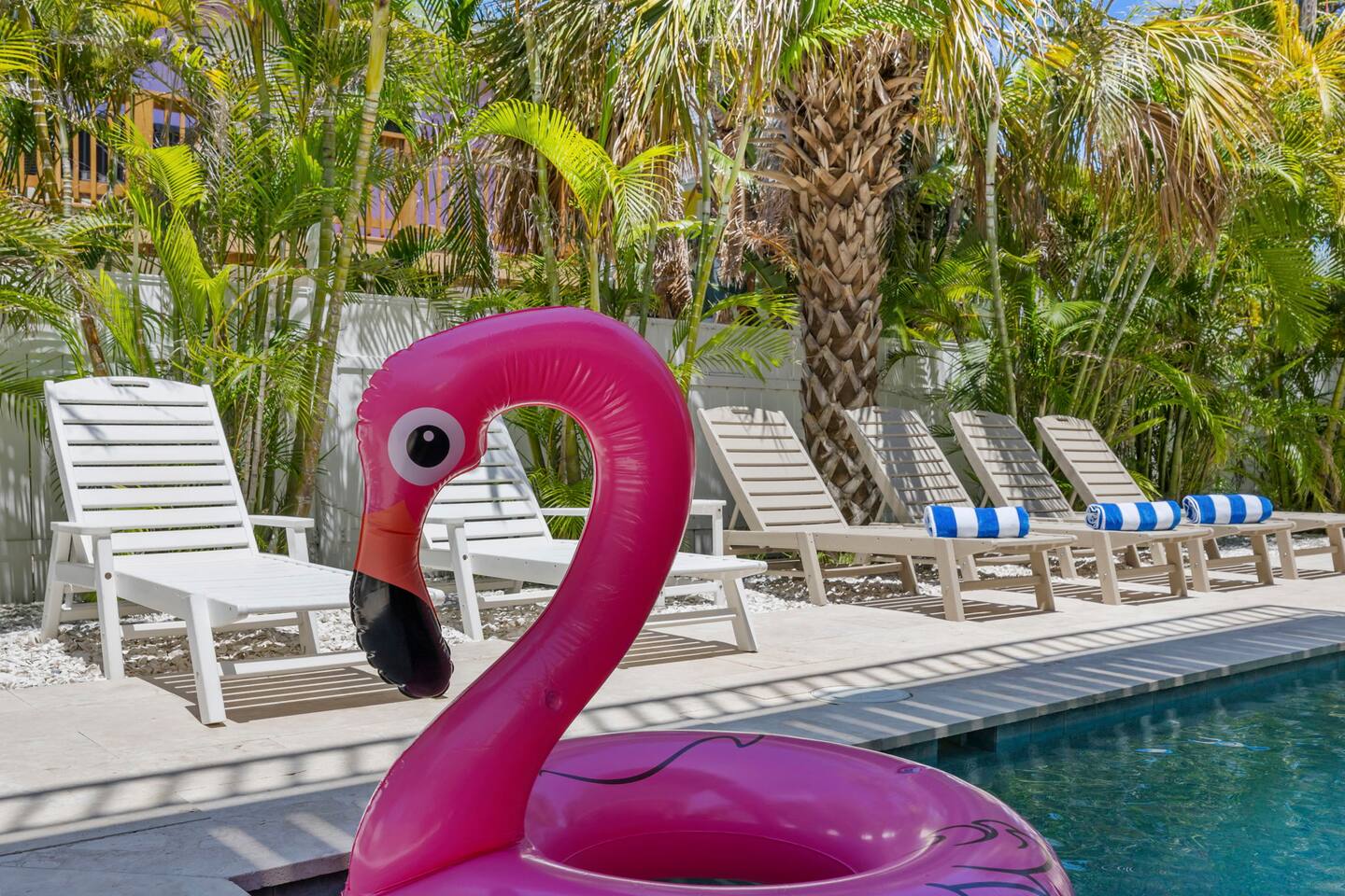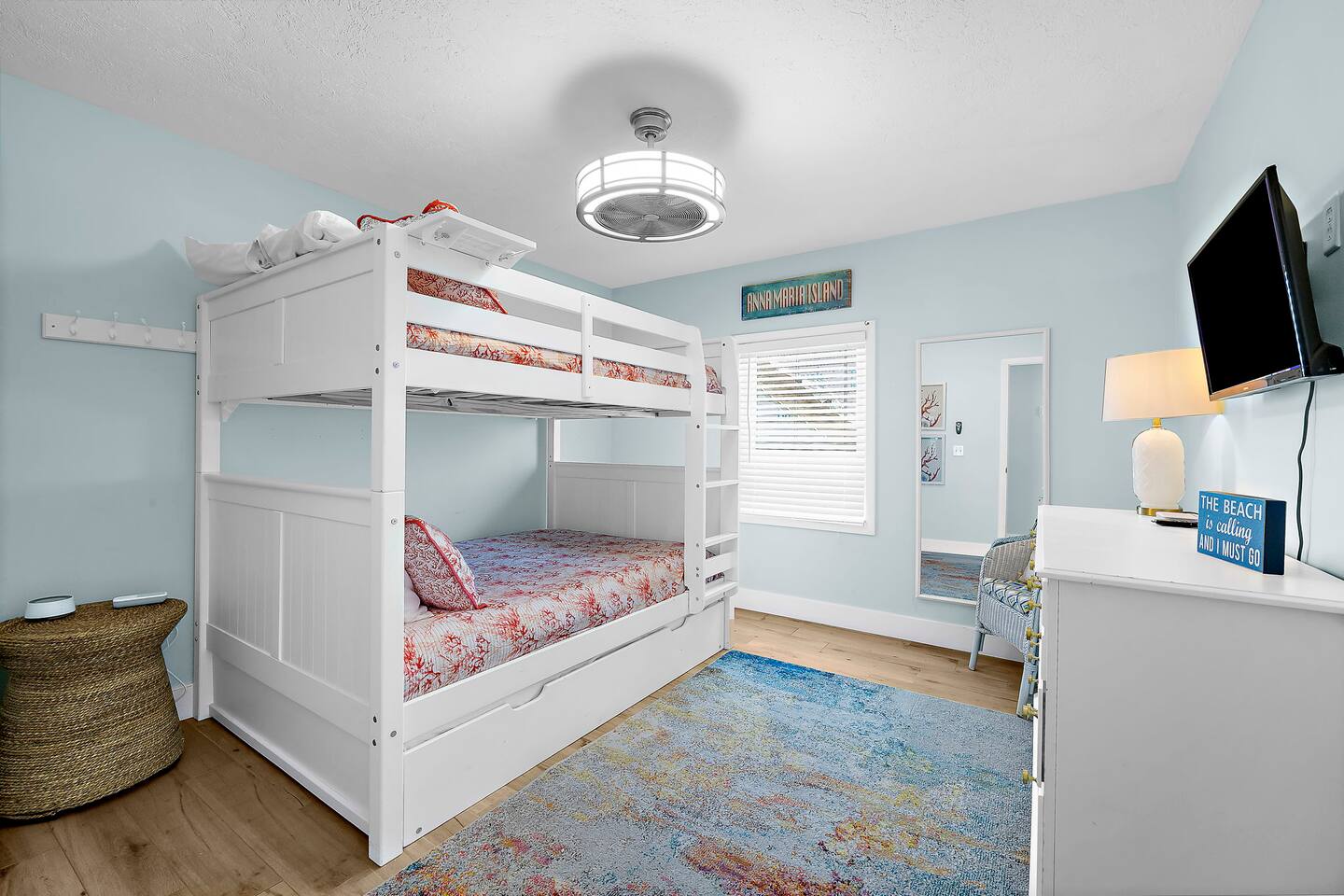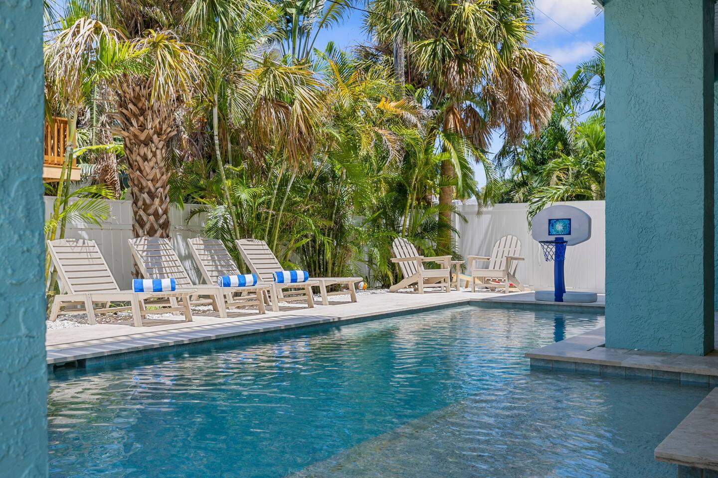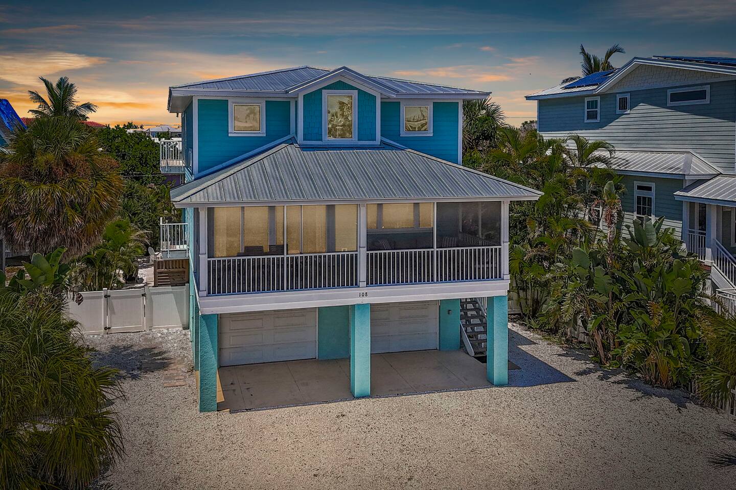 KEY FEATURES ☀ Screened-In Deck for Breezy Island Living Gather for cocktails or dinner outdoors on the spacious screened-in porch with a large dining table and cozy seating. Views of the beach make this space a guest favorite! ☀ Everything You Need for a Perfect Beach Day Chairs, toys, cooler, wagon, umbrella—you’re covered! Just bring your swimsuit. ☀ Private Heated Pool + Spa Your own secluded paradise, complete with shaded areas, sun loungers, and heated spa. ☀ Backyard Lounge + Game Zone Challenge the crew to ping pong, cornhole, or giant Jenga. Catch the game on the outdoor TV, or chill in the shaded lounge next to the sparkling pool. ☀ Full-Size Toiletries Provided Shampoo, conditioner, body wash, hand soap, and lotion—no need to overpack. ☀ Fast, Reliable High-Speed Wi-Fi Perfect for streaming, remote work, or staying connected. ☀ Washer & Dryer with Detergent Included Stay fresh and travel light with in-home laundry at your fingertips. ☆☆ BEDROOMS + BATHROOMS ☆☆ 2 King bedrooms are located on the main floor (2nd floor) and share a full bathroom. The primary suite on the top floor features a king bed, walk-in closet, dresser, nightstands, smart TV, and private balcony. The spa-like en suite includes a dual-sink vanity and oversized step-in shower with two shower heads. The fourth bedroom is also located on the top floor ideal for younger guests, offering a full-over-full bunk bed, smart TV, closet, and a roomy dresser. Each bathroom is stocked with full-size shampoo, conditioner, body wash, hand soap, and lotion, along with plush towels and a cosmetic cloth. ☆☆ KITCHEN & DINING ☆☆ Designed for gathering, the kitchen is open to the living and dining spaces and features granite countertops, stainless steel appliances, and plenty of cabinet space. The peninsula provides bar seating for three, while the large dining table seats eight. You’ll find the kitchen stocked with everything from cookware and utensils to dish soap, dishwasher pods, paper towels, and more. The coffee/tea/espresso bar is a guest favorite—fully equipped with coffee, tea, sugar, and everything you need for your morning ritual. ☆☆ LIVING & LOUNGE SPACES ☆☆ Vaulted ceilings and sun-filled windows create a bright, open living area that’s as relaxing as it is beautiful. A plush sectional and smart TV make movie nights extra cozy. Slide open the glass doors to the screened-in deck, where you’ll find an outdoor sofa, ceiling fan, and a large dining table—perfect for unwinding island-style. Downstairs, your private backyard retreat includes a partially covered heated pool and spa, ping pong table, wall-mounted outdoor TV, and lounge chairs—everything you need for a laid-back afternoon. ☆☆ LAUNDRY & PARKING ☆☆ The washer and dryer are located near the main-level half bath, and we include detergent. • Vacation Rental Certificate (VRC): VRC17000181 • Minimum Stay: 7 nights • Maximum Occupancy: 8 guests • On-Site Parking: 4 vehicles Noise Ordinance: Anna Maria Island enforces a strict noise ordinance to preserve the peaceful, residential nature of the island. Quiet hours are observed in the evenings and overnight. Excessive noise at any time may result in fines or immediate enforcement action by the city. This home is located in a residential area, and we ask all guests to be respectful of neighbors at all times.