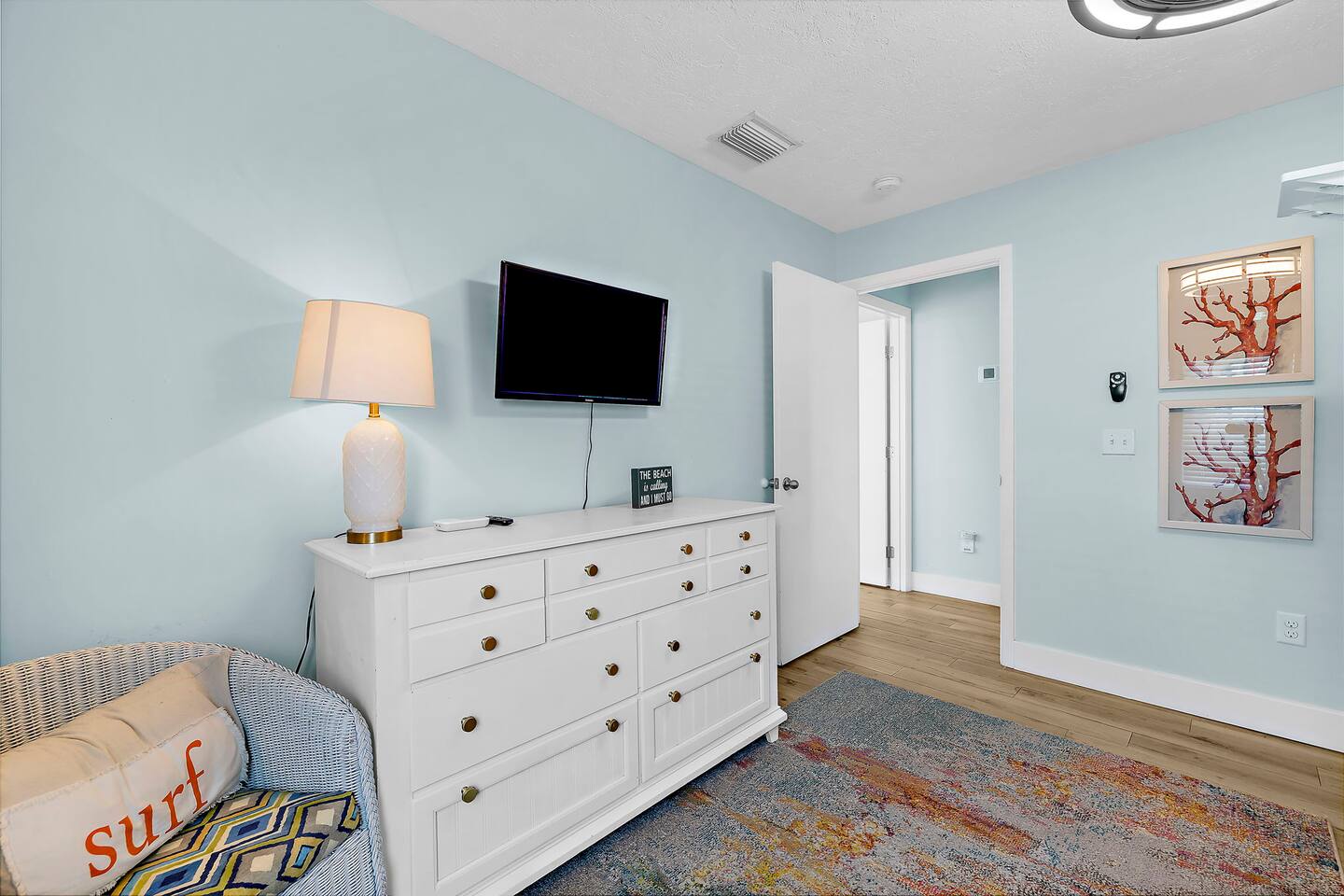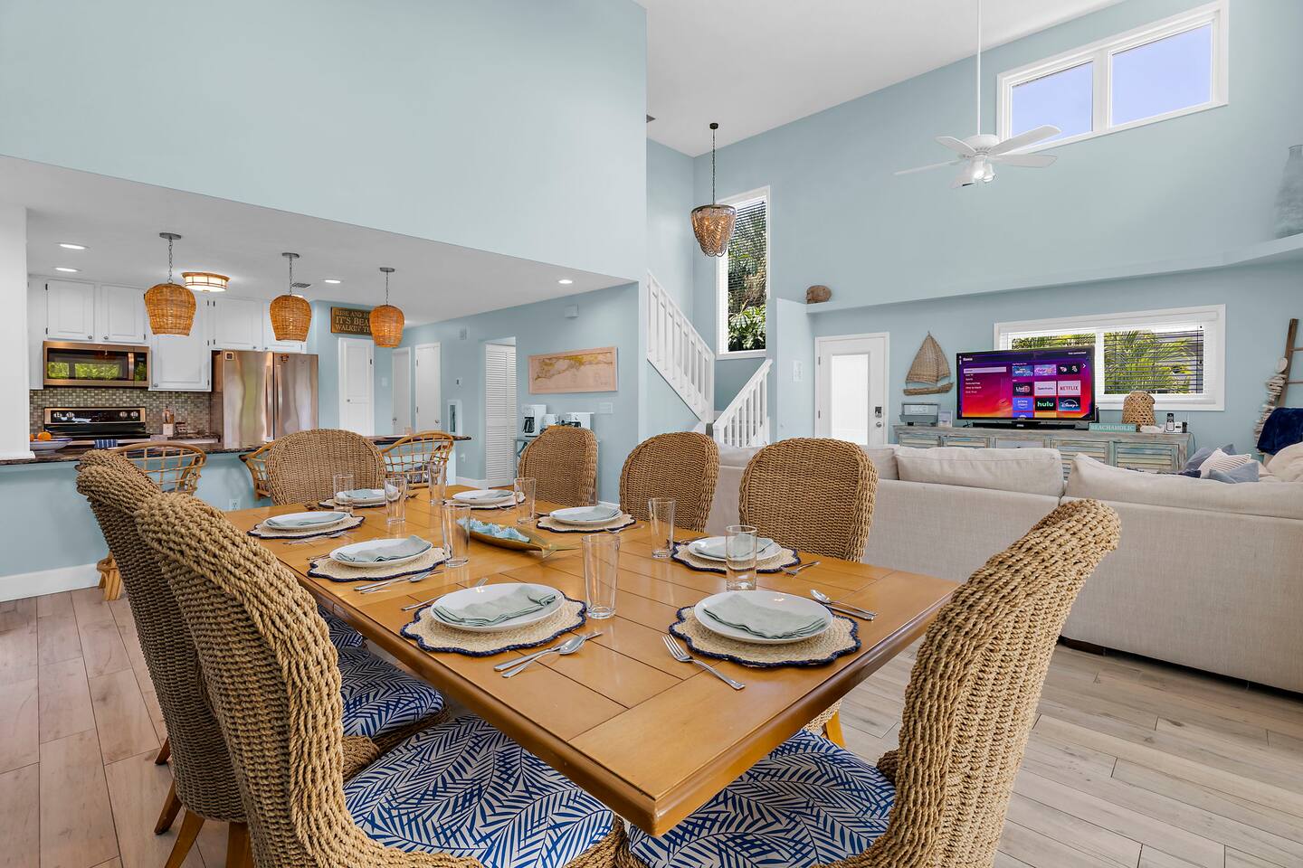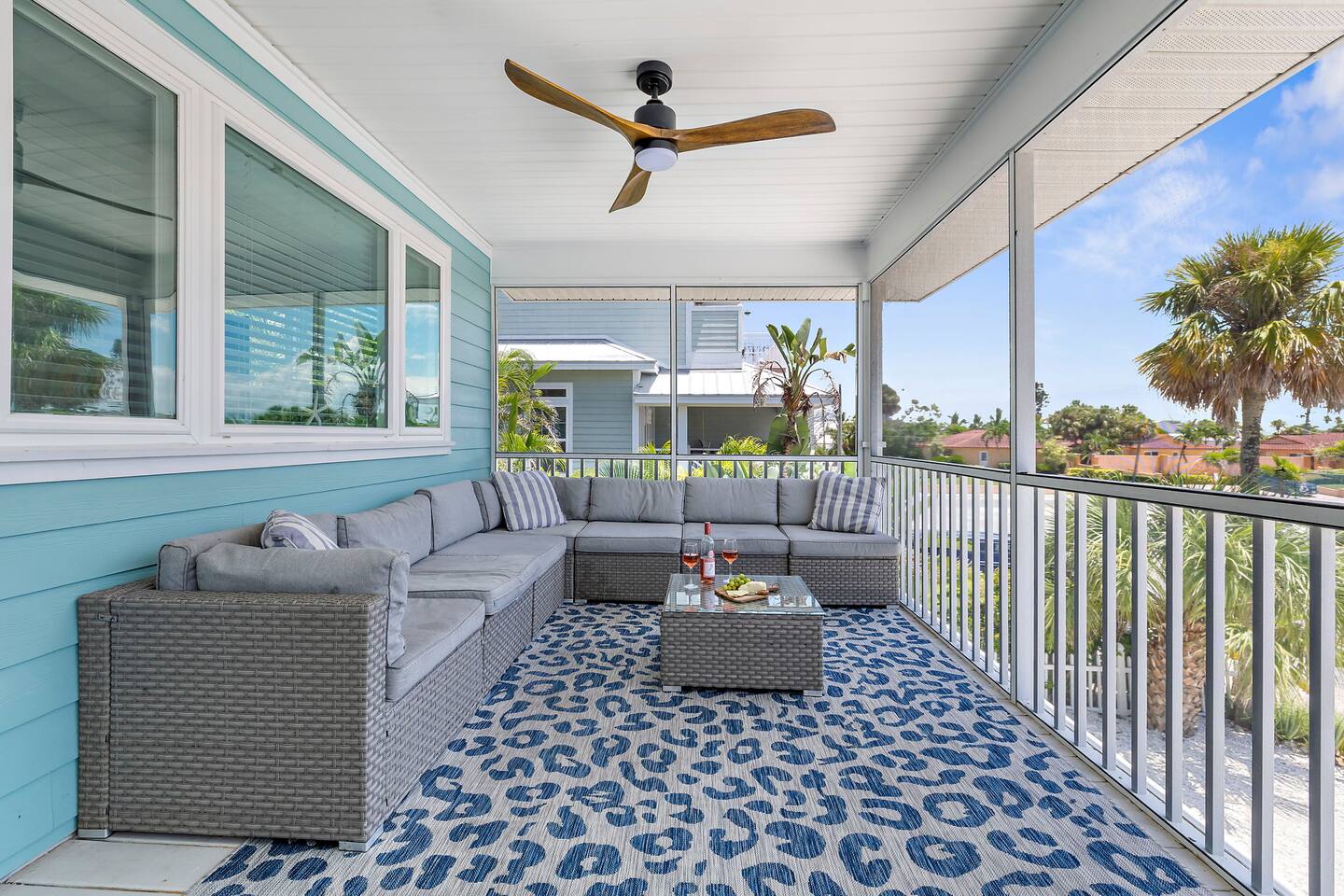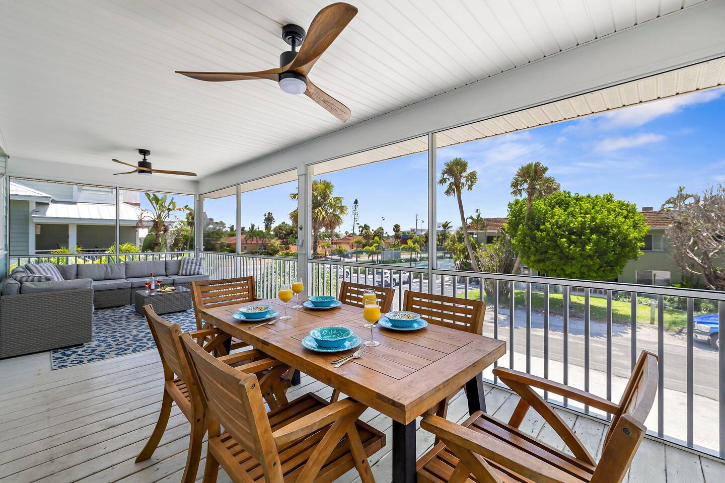 KEY FEATURES ☀ Screened-In Deck for Breezy Island Living Gather for cocktails or dinner outdoors on the spacious screened-in porch with a large dining table and cozy seating. Views of the beach make this space a guest favorite! ☀ Everything You Need for a Perfect Beach Day Chairs, toys, cooler, wagon, umbrella—you’re covered! Just bring your swimsuit. ☀ Private Heated Pool + Spa Your own secluded paradise, complete with shaded areas, sun loungers, and heated spa. ☀ Backyard Lounge + Game Zone Challenge the crew to ping pong, cornhole, or giant Jenga. Catch the game on the outdoor TV, or chill in the shaded lounge next to the sparkling pool. ☀ Full-Size Toiletries Provided Shampoo, conditioner, body wash, hand soap, and lotion—no need to overpack. ☀ Fast, Reliable High-Speed Wi-Fi Perfect for streaming, remote work, or staying connected. ☀ Washer & Dryer with Detergent Included Stay fresh and travel light with in-home laundry at your fingertips. ☆☆ BEDROOMS + BATHROOMS ☆☆ 2 King bedrooms are located on the main floor (2nd floor) and share a full bathroom. The primary suite on the top floor features a king bed, walk-in closet, dresser, nightstands, smart TV, and private balcony. The spa-like en suite includes a dual-sink vanity and oversized step-in shower with two shower heads. The fourth bedroom is also located on the top floor ideal for younger guests, offering a full-over-full bunk bed, smart TV, closet, and a roomy dresser. Each bathroom is stocked with full-size shampoo, conditioner, body wash, hand soap, and lotion, along with plush towels and a cosmetic cloth. ☆☆ KITCHEN & DINING ☆☆ Designed for gathering, the kitchen is open to the living and dining spaces and features granite countertops, stainless steel appliances, and plenty of cabinet space. The peninsula provides bar seating for three, while the large dining table seats eight. You’ll find the kitchen stocked with everything from cookware and utensils to dish soap, dishwasher pods, paper towels, and more. The coffee/tea/espresso bar is a guest favorite—fully equipped with coffee, tea, sugar, and everything you need for your morning ritual. ☆☆ LIVING & LOUNGE SPACES ☆☆ Vaulted ceilings and sun-filled windows create a bright, open living area that’s as relaxing as it is beautiful. A plush sectional and smart TV make movie nights extra cozy. Slide open the glass doors to the screened-in deck, where you’ll find an outdoor sofa, ceiling fan, and a large dining table—perfect for unwinding island-style. Downstairs, your private backyard retreat includes a partially covered heated pool and spa, ping pong table, wall-mounted outdoor TV, and lounge chairs—everything you need for a laid-back afternoon. ☆☆ LAUNDRY & PARKING ☆☆ The washer and dryer are located near the main-level half bath, and we include detergent. • Vacation Rental Certificate (VRC): VRC17000181 • Minimum Stay: 7 nights • Maximum Occupancy: 8 guests • On-Site Parking: 4 vehicles Noise Ordinance: Anna Maria Island enforces a strict noise ordinance to preserve the peaceful, residential nature of the island. Quiet hours are observed in the evenings and overnight. Excessive noise at any time may result in fines or immediate enforcement action by the city. This home is located in a residential area, and we ask all guests to be respectful of neighbors at all times.